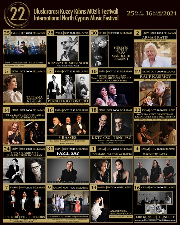 Lefkosa, 15 Ekim 24 (TAK): Kuzey Kıbrıs Müzik Derneği tarafından düzenlenen 22. Uluslararası Kuzey Kıbrıs Müzik Festivali yarın akşam gerçekleştirilecek 3 Basses Konseri ile devam ediyor.