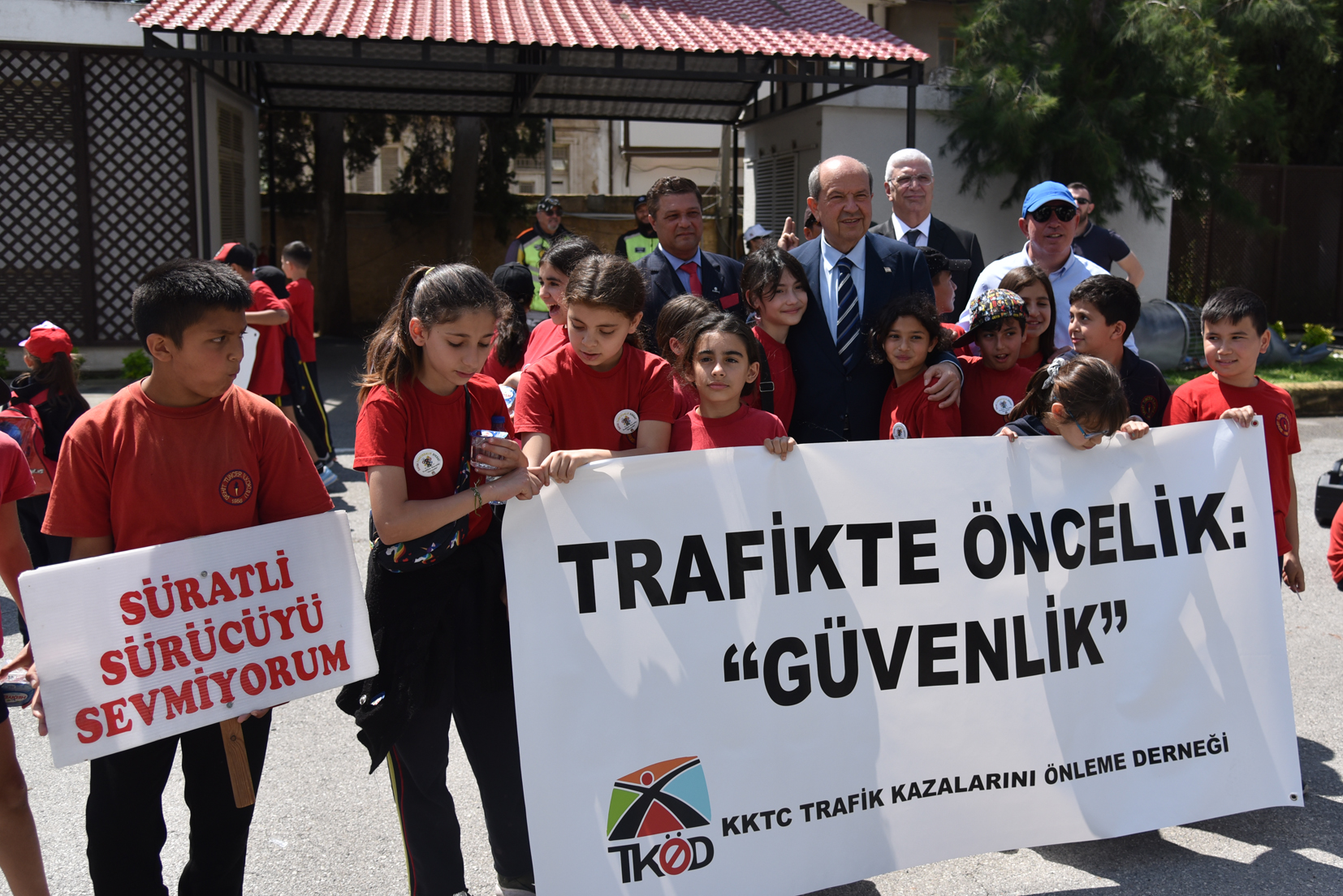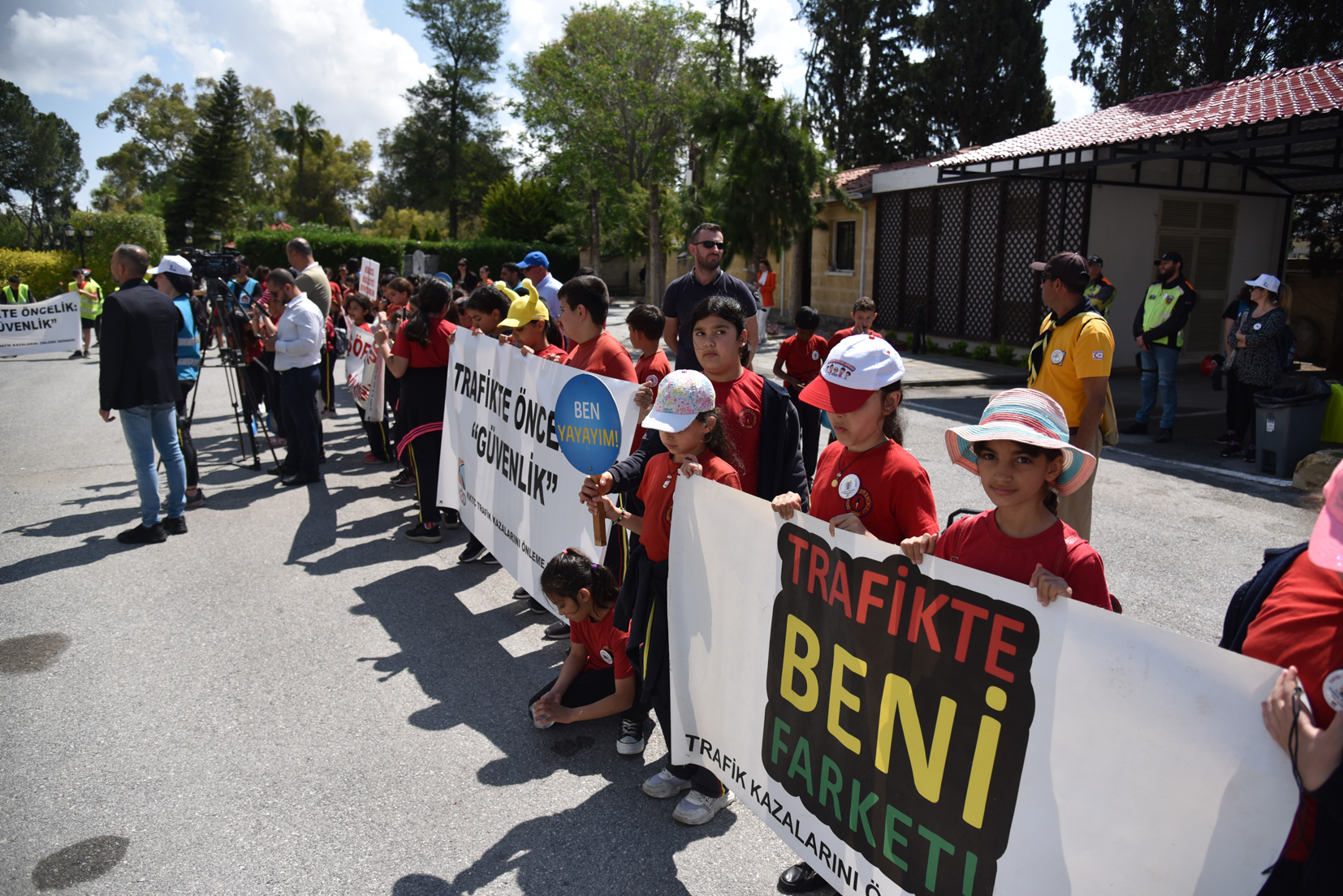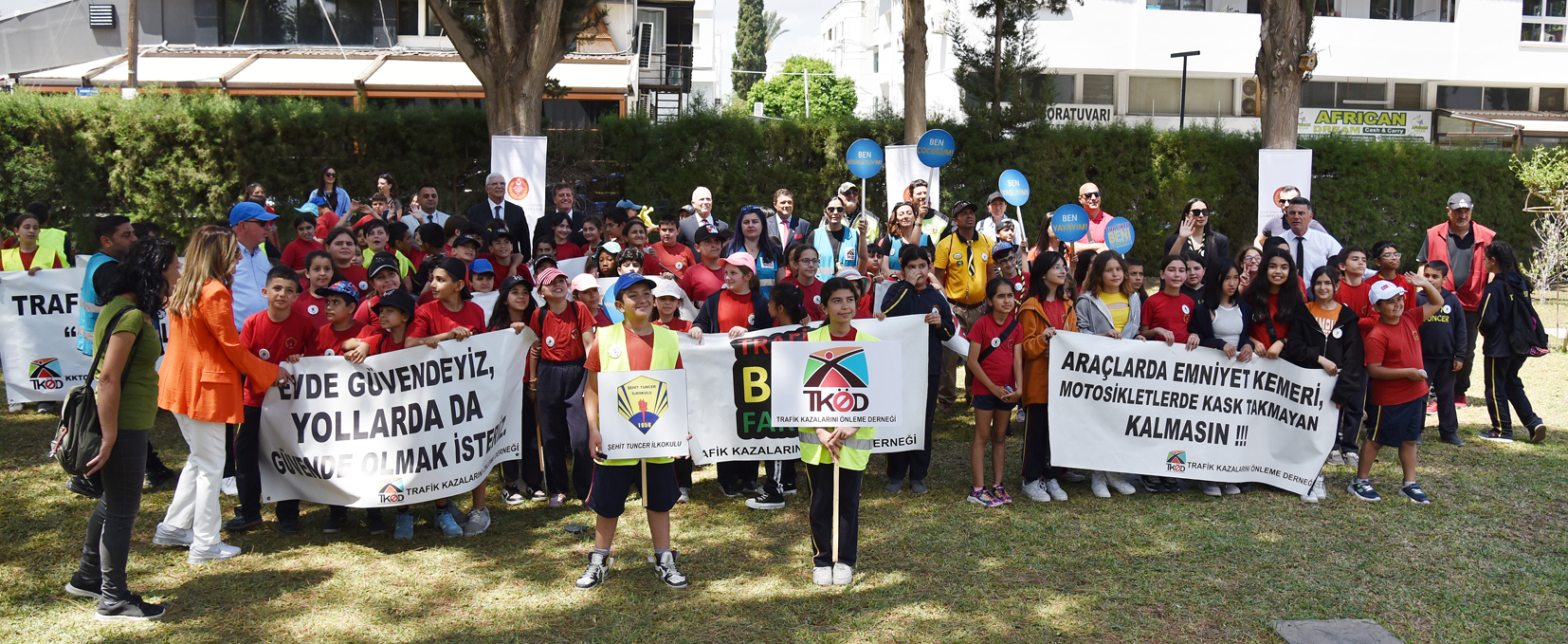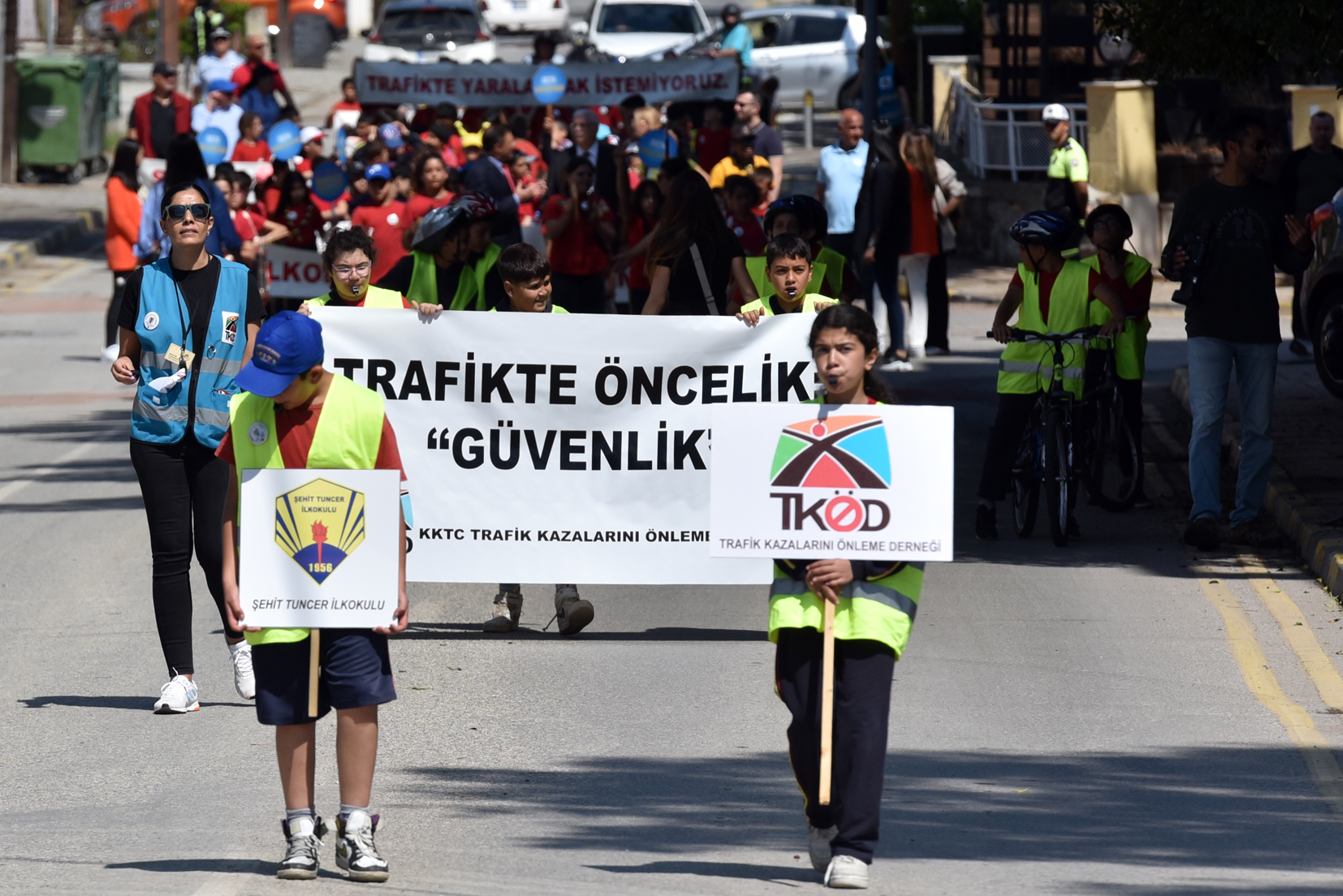 Kortejde çocuklar, “Alkollü sürücü sevmiyoruz”, “Çocukların yeri arka koltuktur”, “Trafikte yaralanmak istemiyoruz”, “Alkol ve sürate yenilmeyin” yazılı pankartlar taşıdı