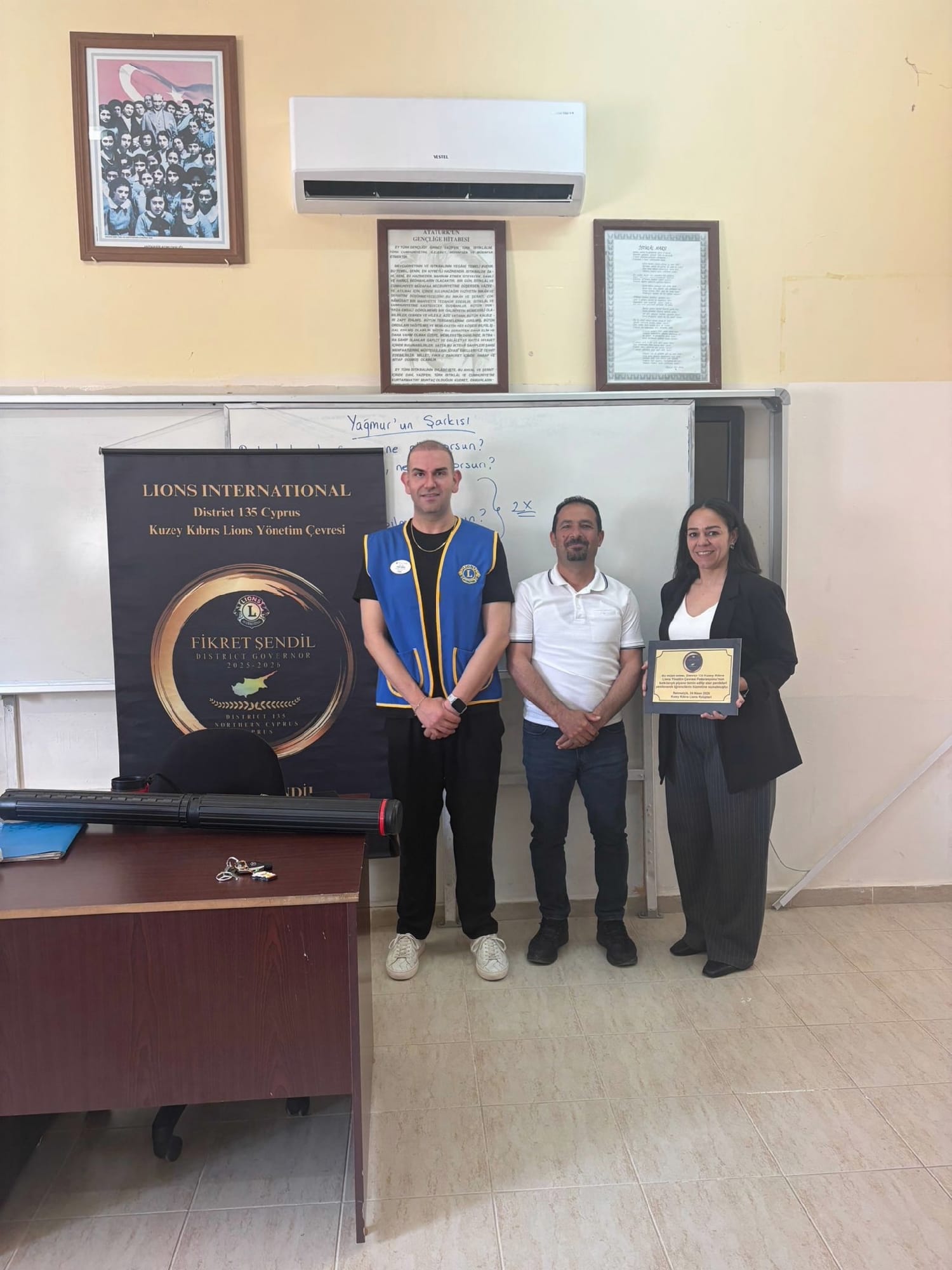 Lefkoşa, 25 Nisan 26 (TAK): District 135 Kuzey Kıbrıs Lions Yönetim Çevresi Federasyonu, eğitime destek çalışmaları kapsamında, Mehmetçik Ortaokulu’nun müzik odasına piyano ve stor perde bağışında bulundu.