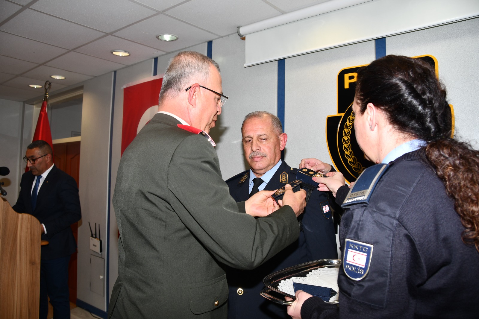 Lefkoşa, 4 Nisan 23 (TAK): Polis Genel Müdürlüğü'ne atanan Kasım Kuni'ye, bugün düzenlenen törenle rütbeleri takıldı.