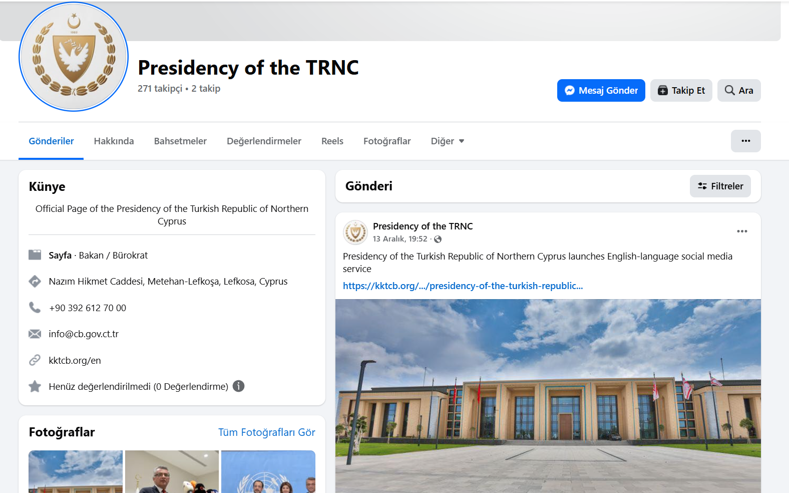 Presidency of the TRNC launches English-language social media service...