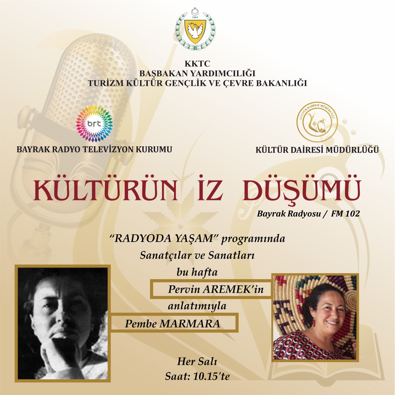 Lefkoşa, 18 Temmuz 22 (TAK): Başbakan Yardımcılığı, Turizm, Kültür, Gençlik ve Çevre Bakanlığı’na bağlı Kültür Dairesi ve Bayrak Radyo Televizyon Kurumu iş birliğinde, Bayrak Radyosu’nda ve BRT1 Televizyon kanallarında ülkenin kültür sanatını ve sanatçılarını tanıtan programlar hazırlanıyor.