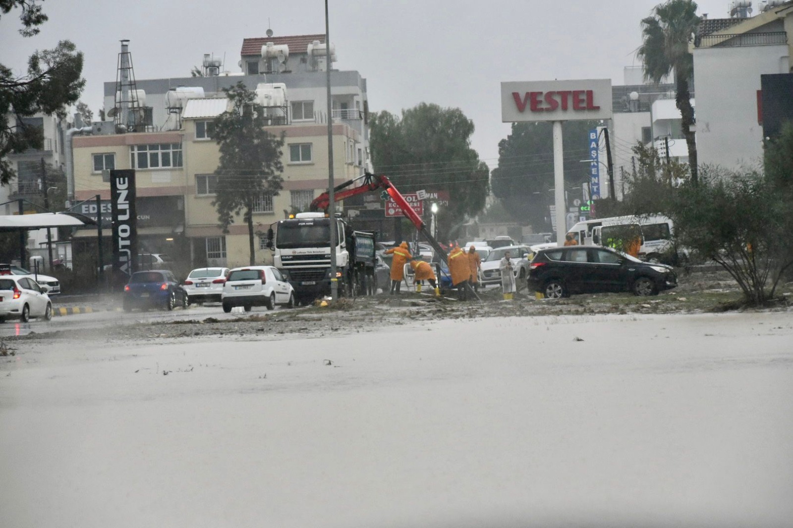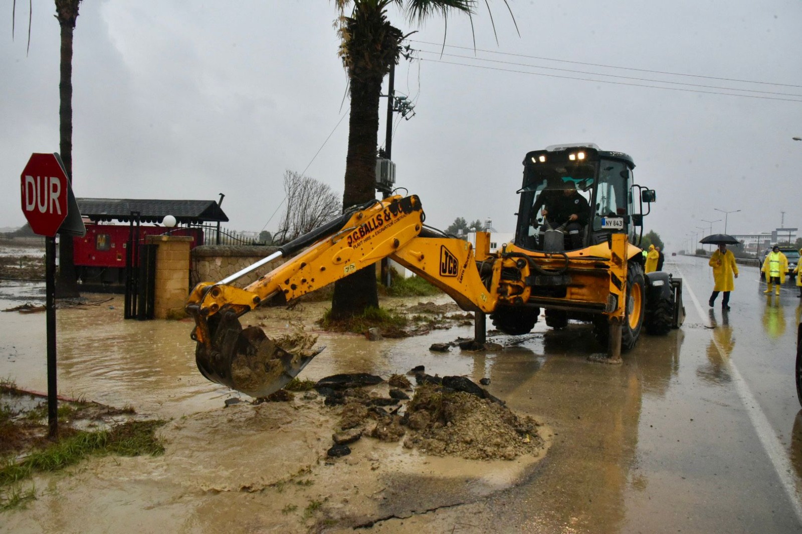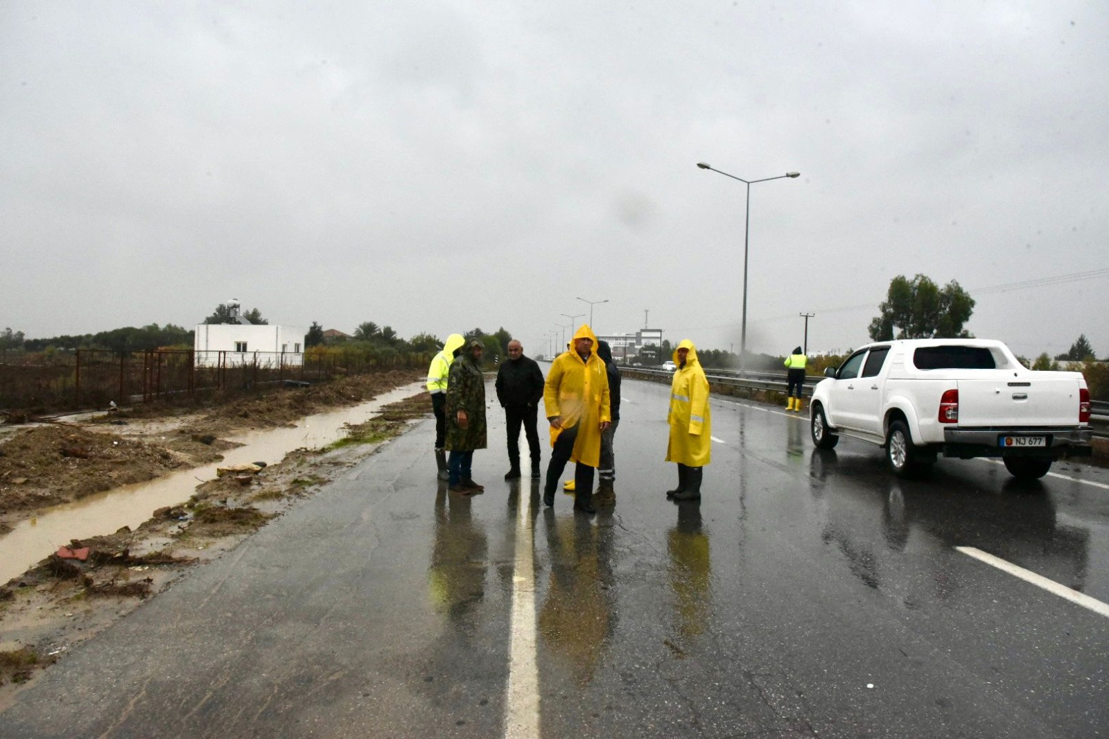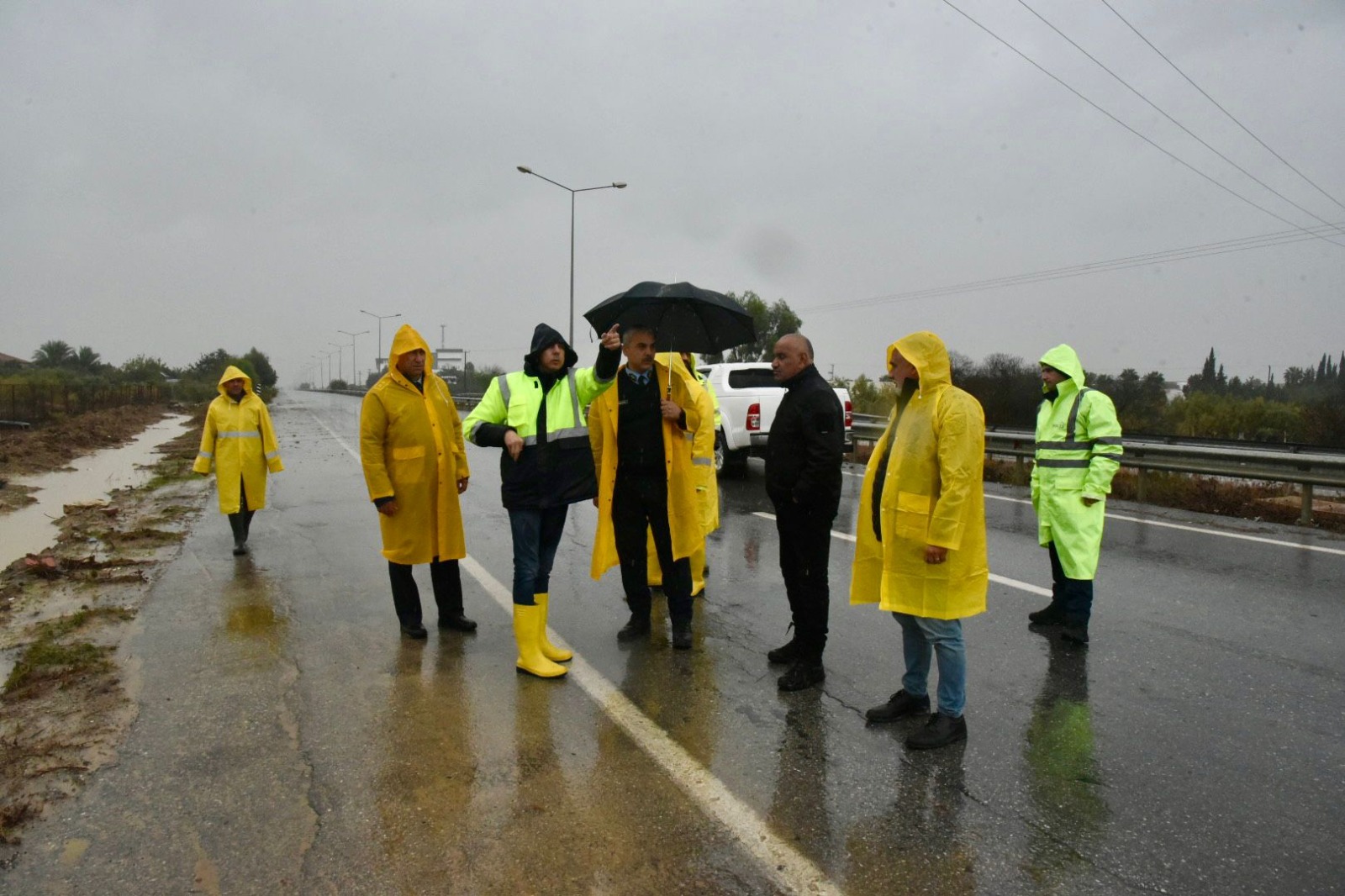 bir bölümü trafiğe kapatılan Güzelyurt-Lefkoşa anayolunda incelemelerde