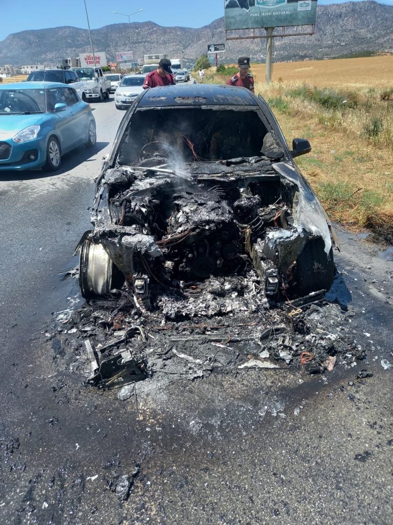 Lefkoşa, 16 Mayıs 22 (TAK): Girne - Lefkoşa anayolunda seyir halinde bulunan Hişam Tarazi kullanımındaki PY 552 plakalı salon araçta yangın meydana geldi.