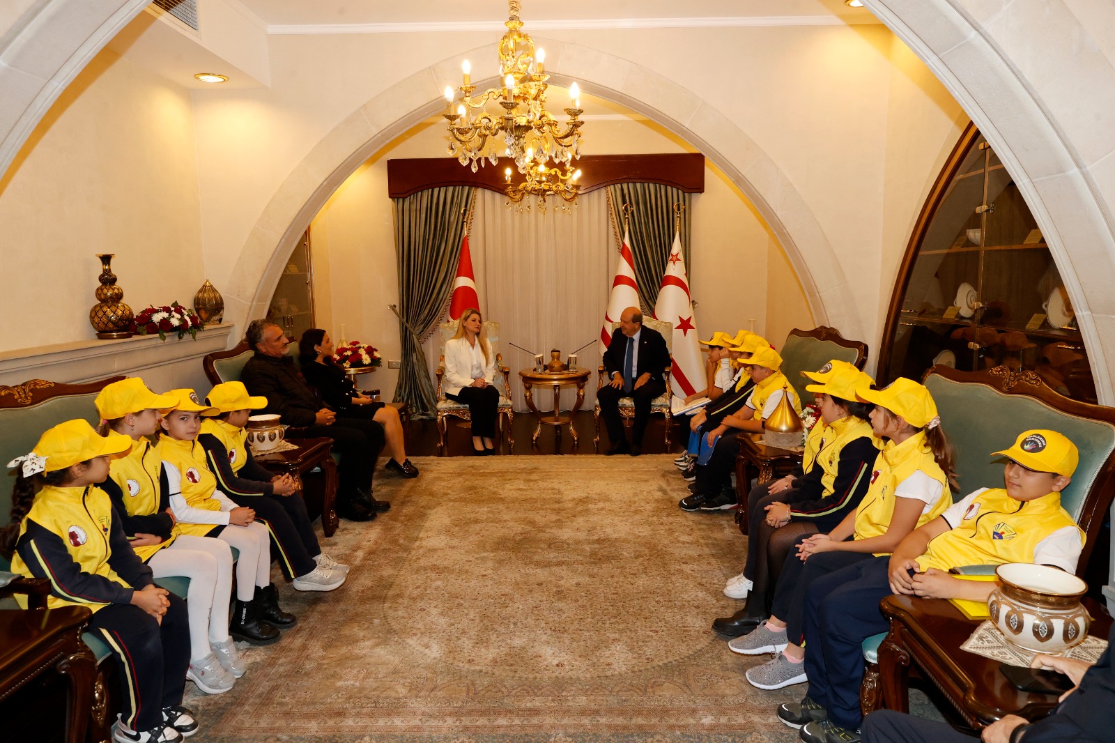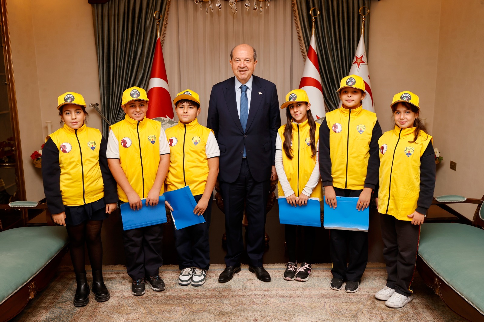 Lefkoşa, 19 Kasım 24 (TAK): 20 Kasım Dünya Çocuk Hakları Günü dolayısıyla Şehit Tuncer İlkokulu müdürü, öğretmenleri ve öğrencileri Cumhurbaşkanı Ersin Tatar’a ziyarette bulundu.