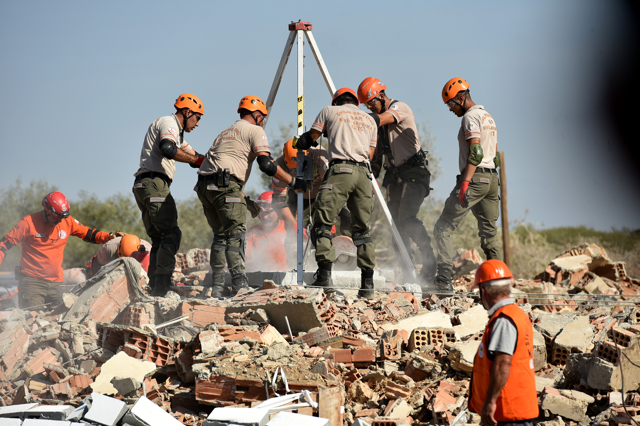 Tatbikatı 2025 İskele’de Mackenzie Beach bölgesinde icra edildi. Tatbikatta, merkez üssü Gazimağusa Körfezi olan, deniz tabanının dört buçuk kilometre derinliğindeki 7,7 büyüklüğünde depremin ardından yaşanan olaylar canlandırıldı.