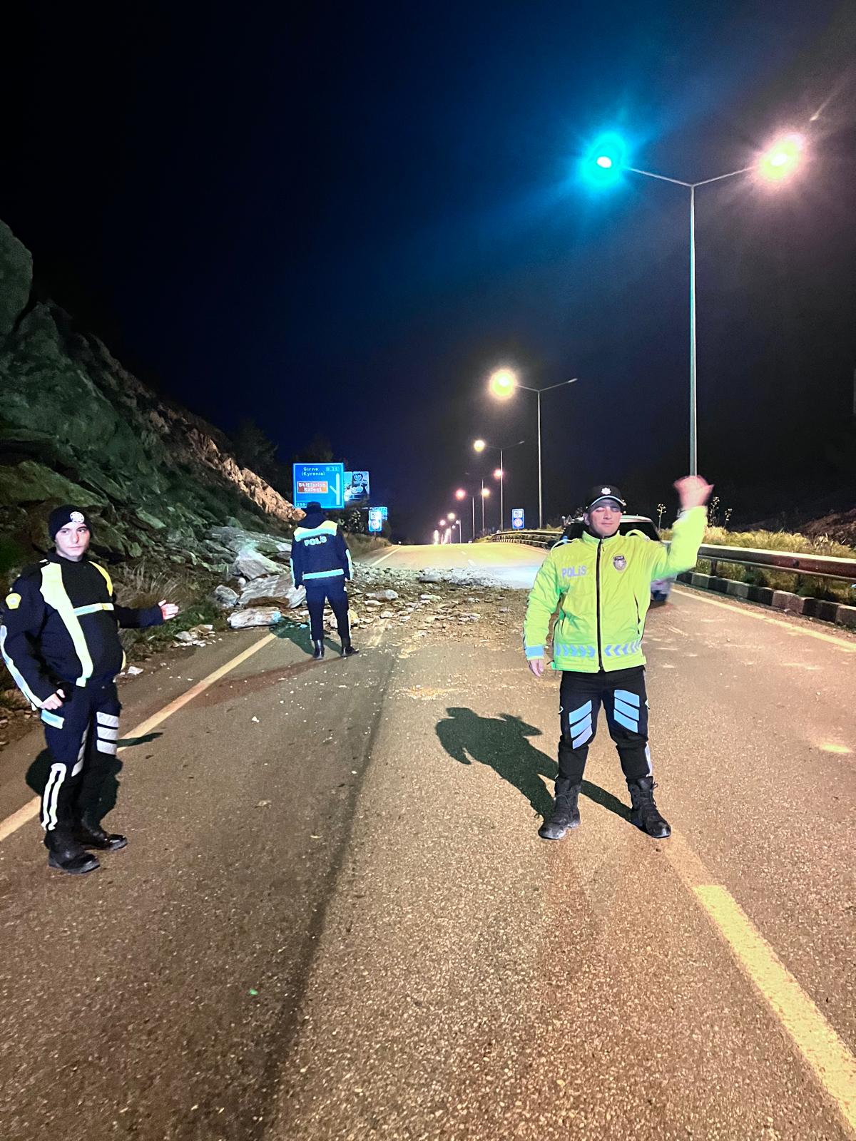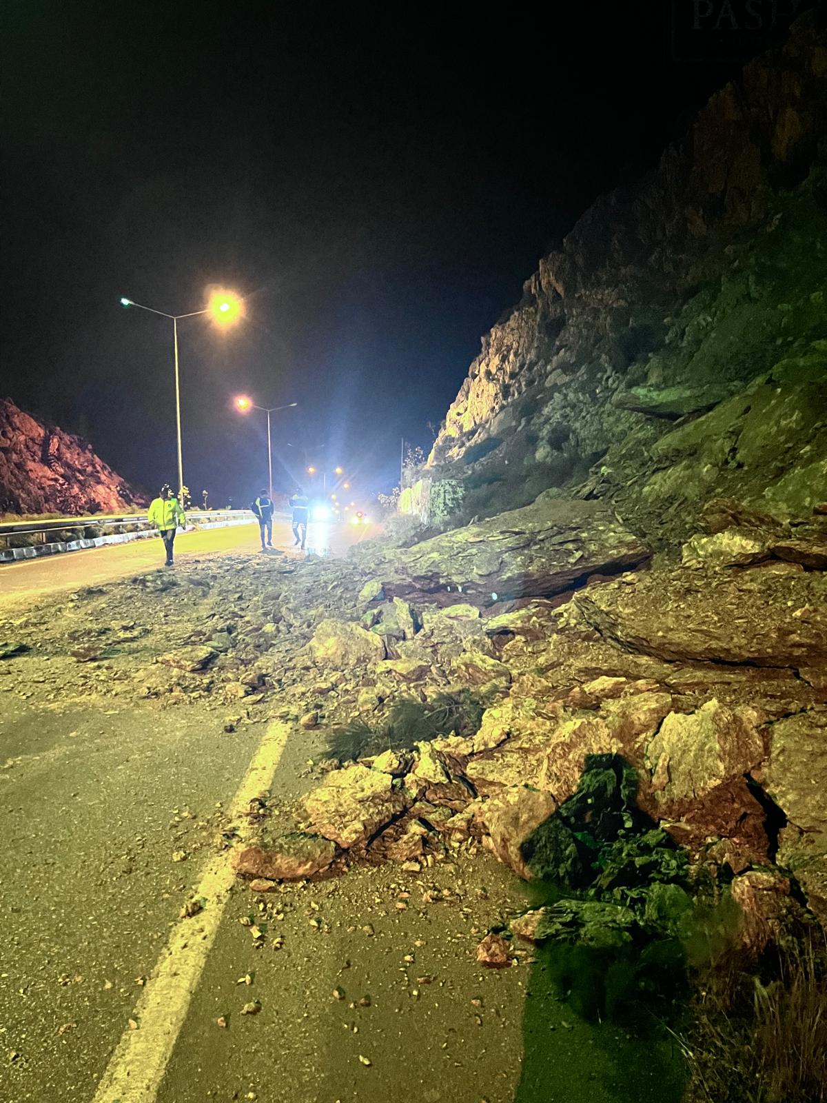 Lefkoşa, 15 Mart 26 (TAK): Lefkoşa - Girne Anayolunun Darboğaz Mevkiinde (St Hilarion Kavşağı yakınları) yola kaya parçaları düştü.