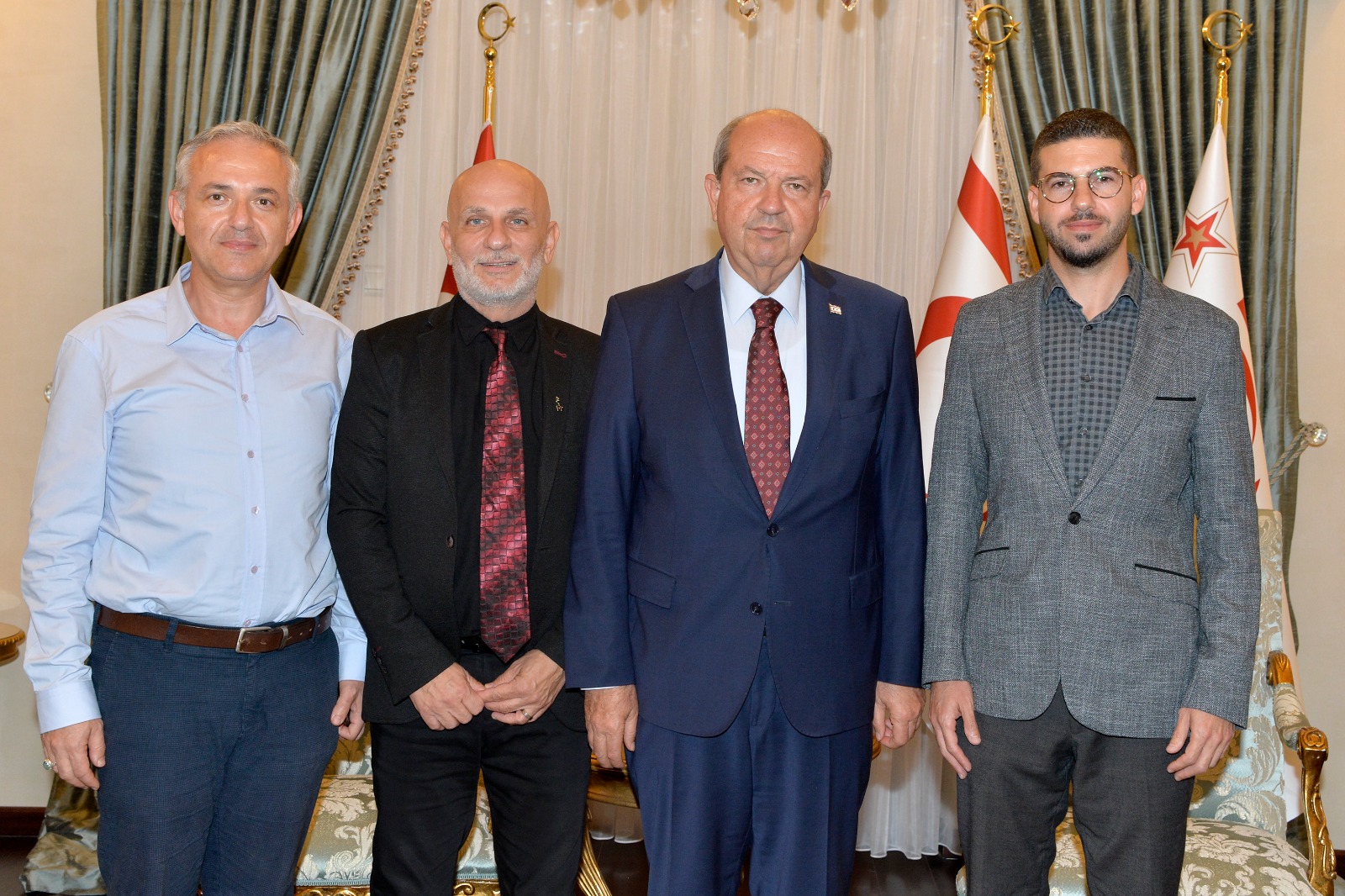 Lefkoşa, 1 Kasım 23 (TAK): Cumhurbaşkanı Ersin Tatar, Kıbrıs Türk Serbest Çalışan Hekimler Birliği Başkanı Dr. Remzi Gardiyanoğlu ve beraberindeki heyeti kabul etti.
