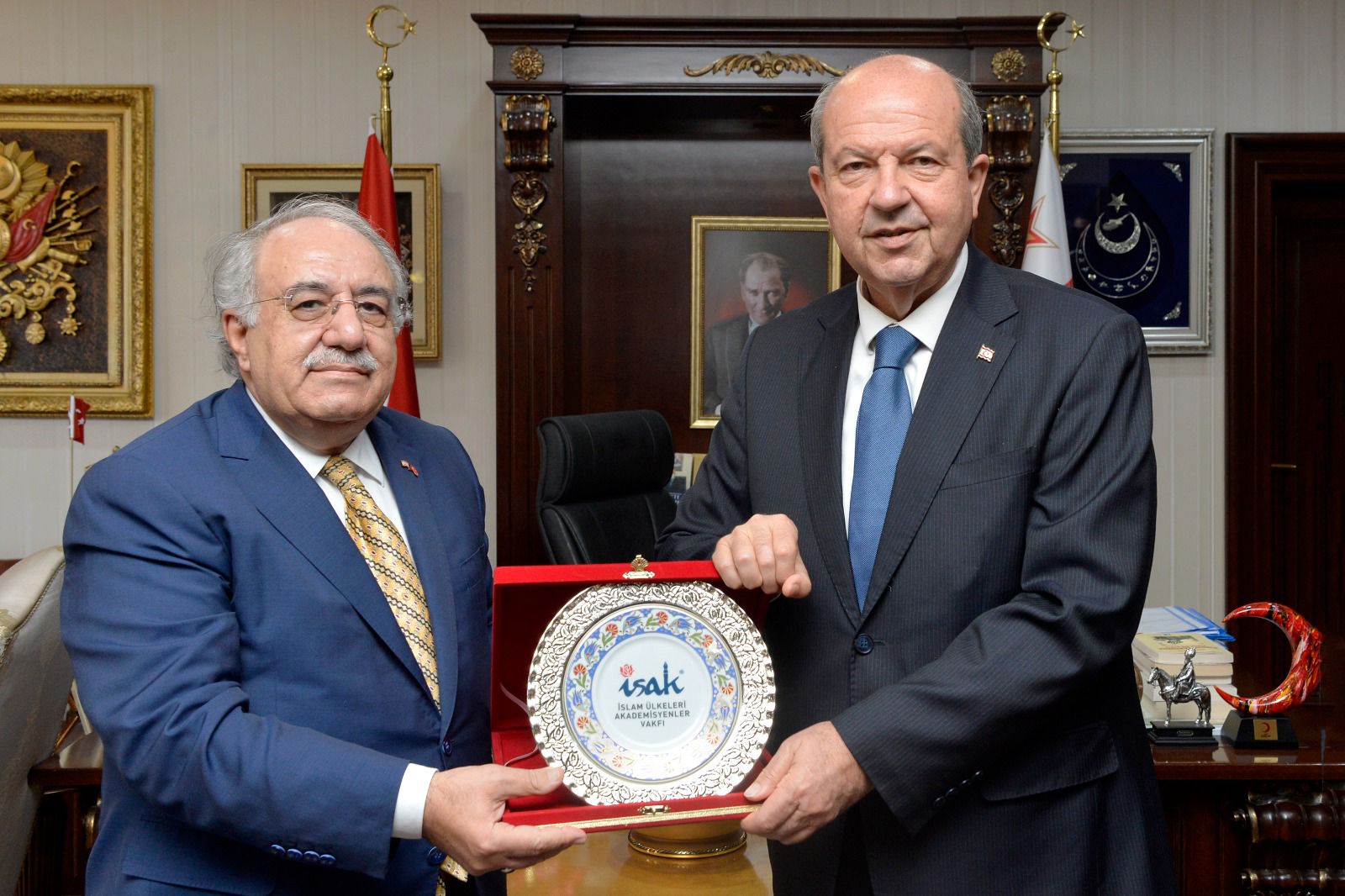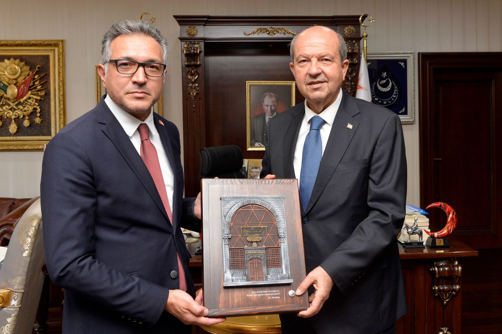 Lefkoşa, 1 Kasım 23 (TAK): Cumhurbaşkanı Ersin Tatar, Konya Selçuk Üniversitesi Rektörü Prof. Dr. Metin Aksoy ve beraberindeki heyeti kabul etti.