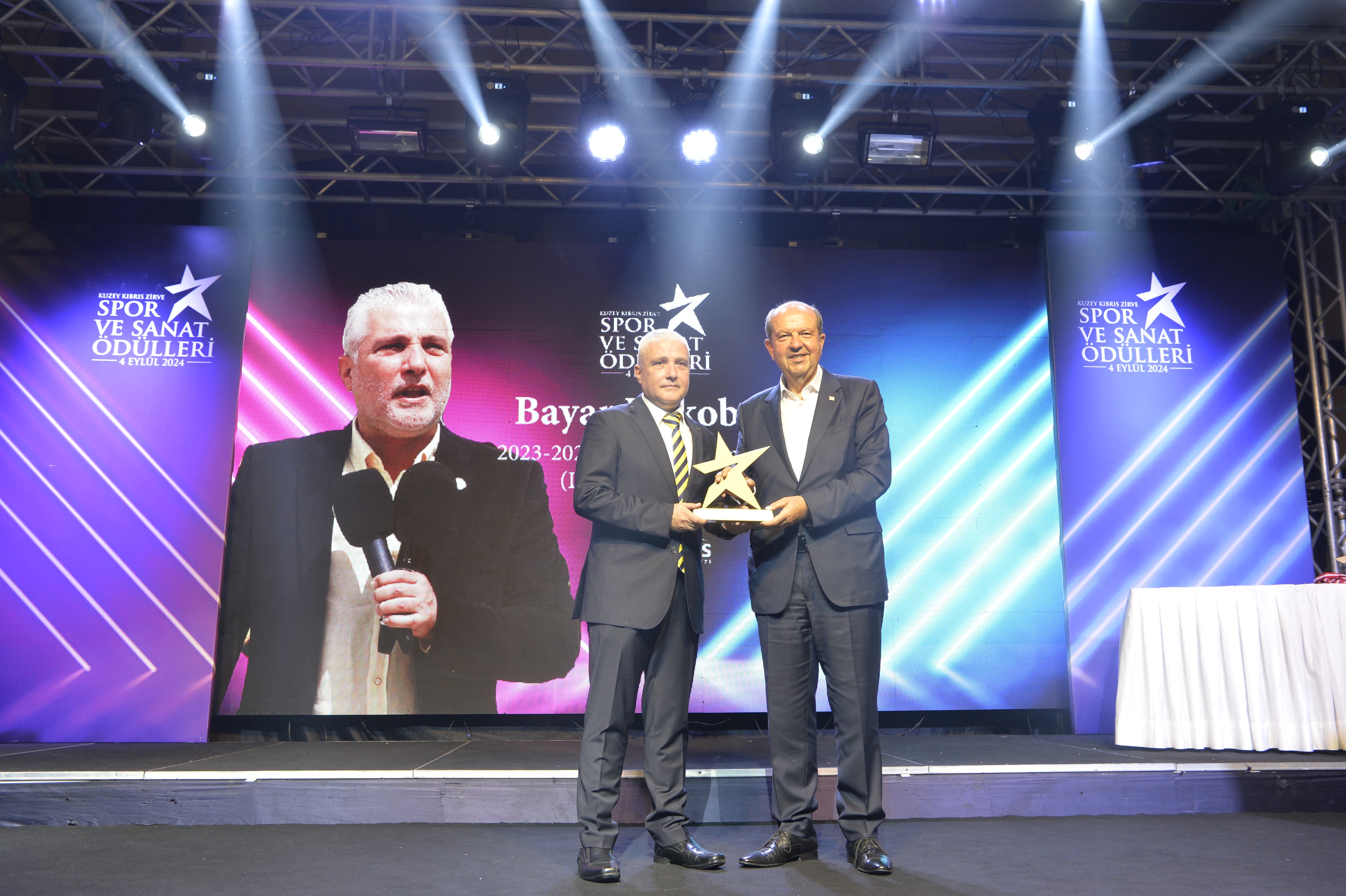 Lefkoşa, 5 Eylül 24 (TAK): Cumhurbaşkanı Ersin Tatar, Kuzey Kıbrıs Zirve Spor ve Sanat Ödülleri Gala Gecesi^'ne katıldı.
