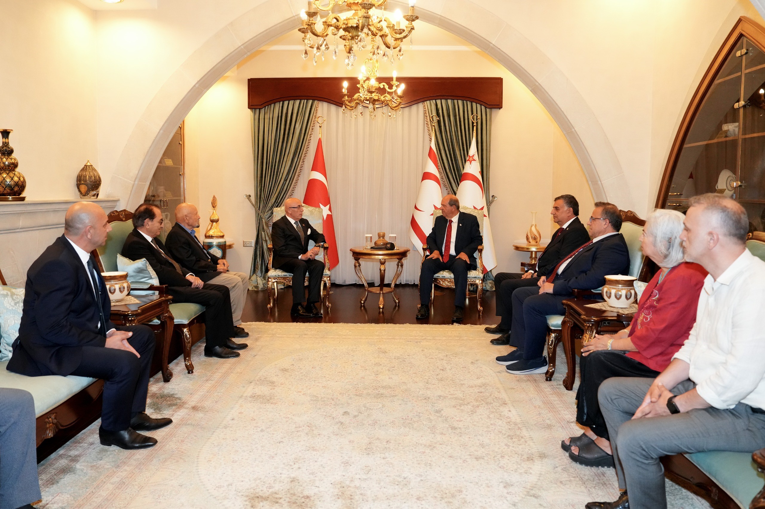 Lefkoşa, 19 Eylül 24 (TAK): Cumhurbaşkanı Ersin Tatar, Türk Dünyası Mühendisler ve Mimarlar Birliği Genel Başkanı İlyas Demirci ve beraberindeki heyeti kabul etti.