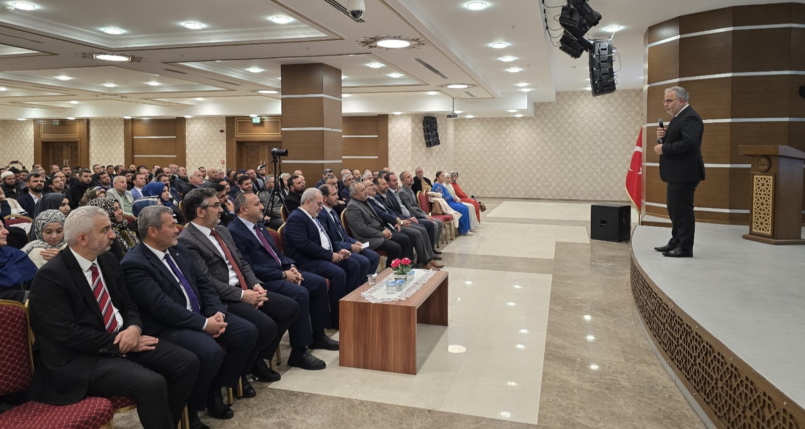 Konferans Salonu’nda din görevlileriyle bir araya geldi.