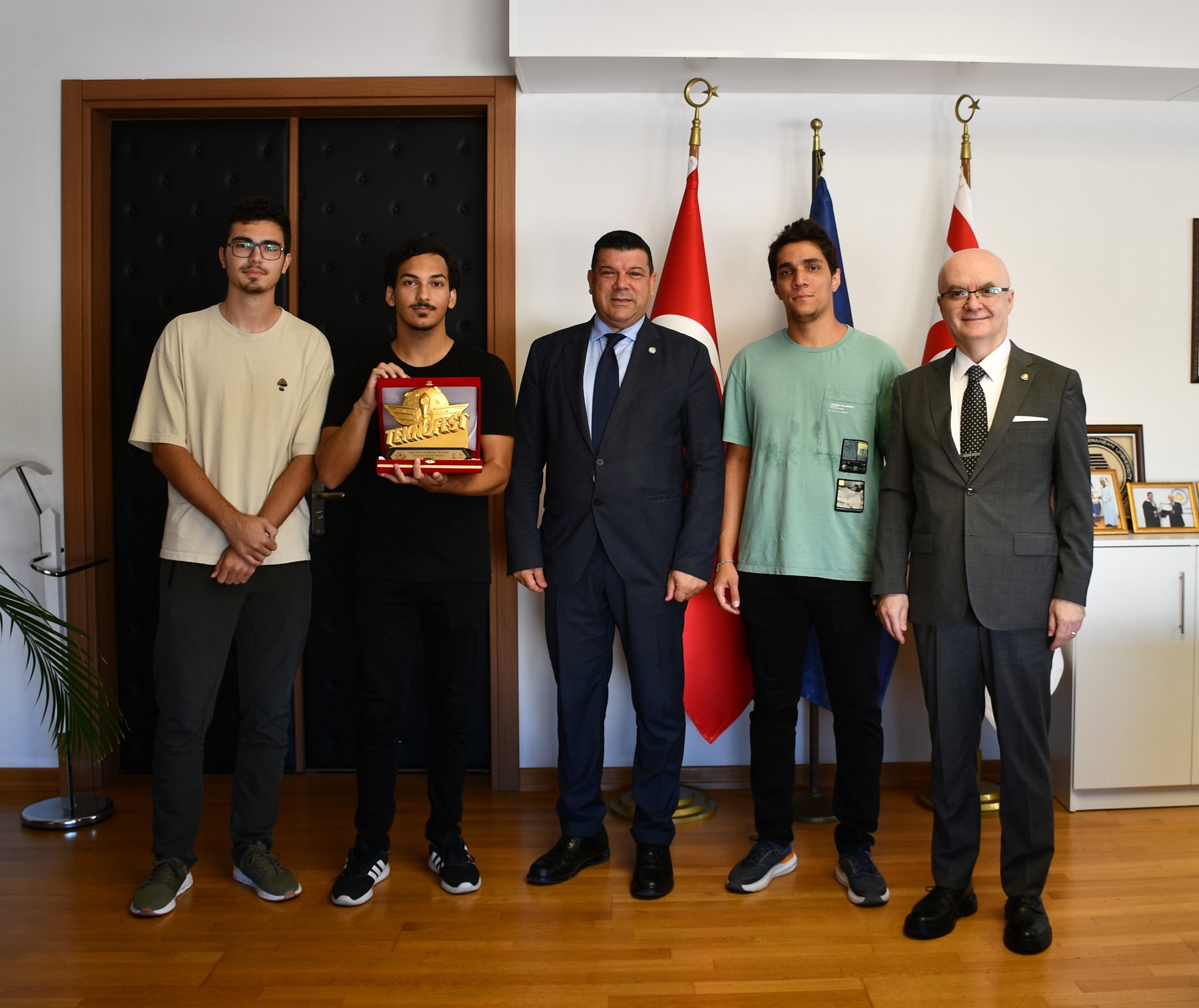 yarışmaya katılarak birinci olan öğrenciler, DAÜ Rektörü Prof. Dr. Hasan