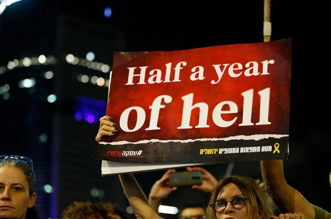 Tel Aviv'de on binlerce İsrailli, erken seçim ve Gazze'deki esirlerin salıverilmesi talebiyle gösteri yaptı