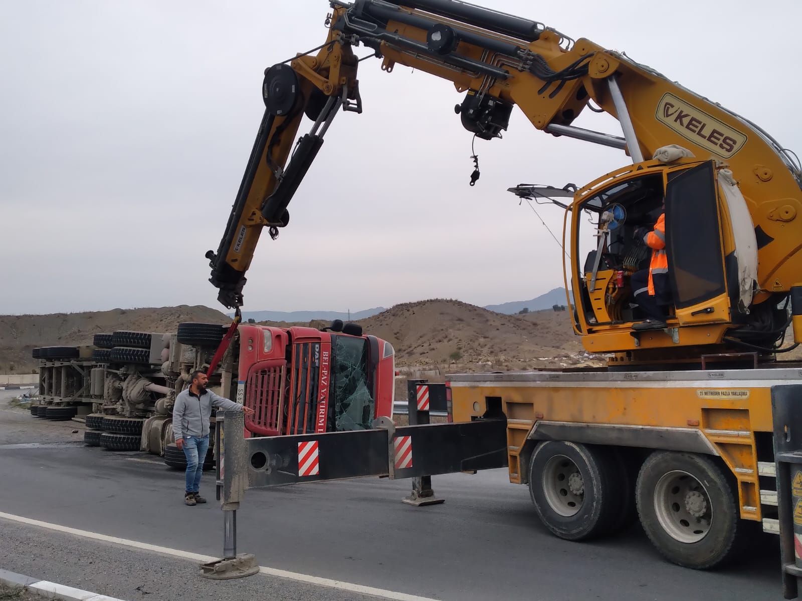 Lefkoşa, 21 Aralık 23 (TAK): Lefkoşa'da kuzey çevre yolunda kavşağa süratli giren tır devrildi. Kazada 1 kişi yaralandı.