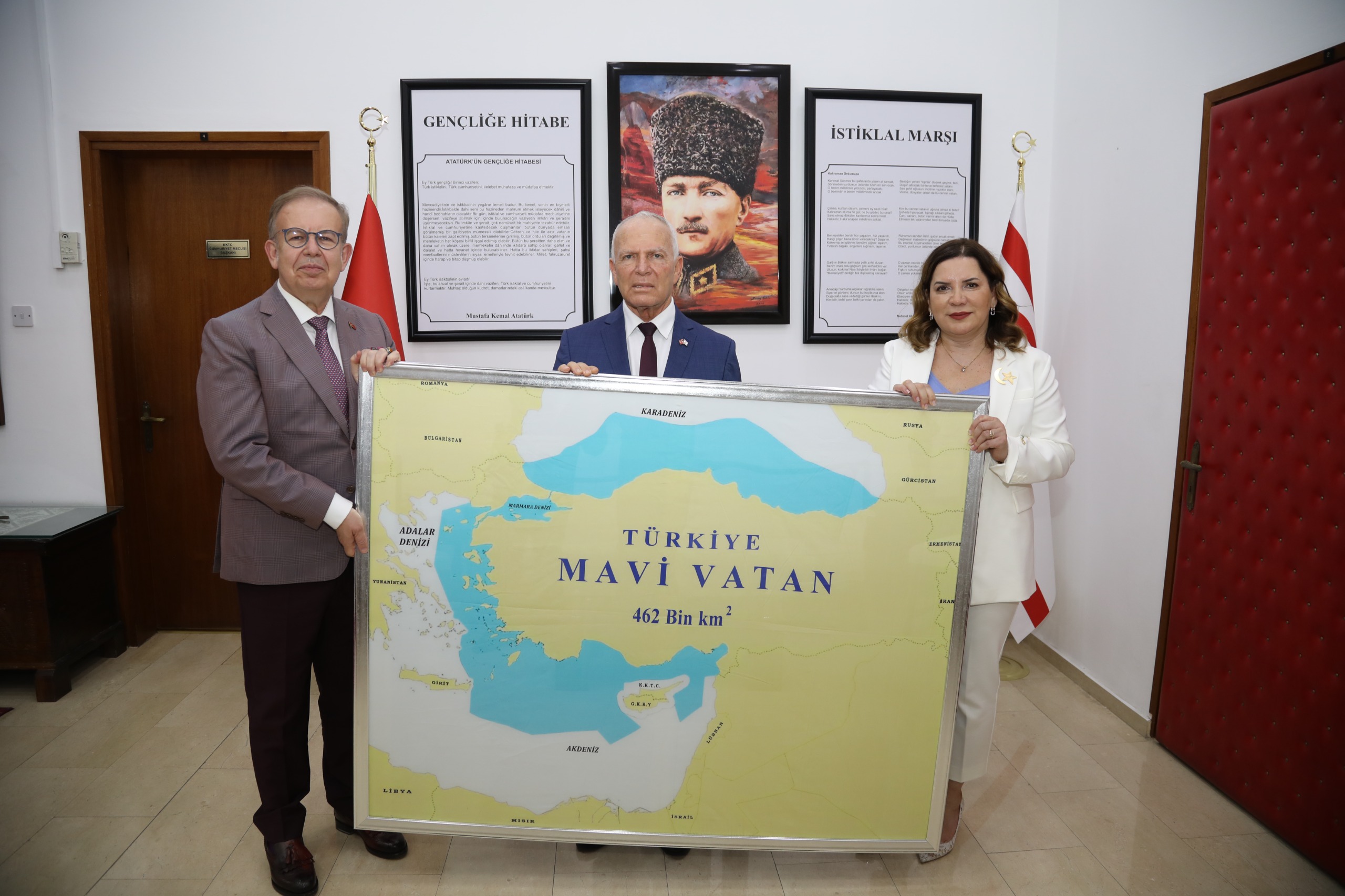 Lefkoşa, 30 Ağustos 24 (TAK): Cumhuriyet Meclisi Başkanı Zorlu Töre, “Mavi Vatan yoktur” diyenlerin büyük bir gaflet içerisinde bulunduğunu, KKTC’nin kara, deniz ve hava sahası ile Mavi Vatan’ın parçası olduğunu belirtti.