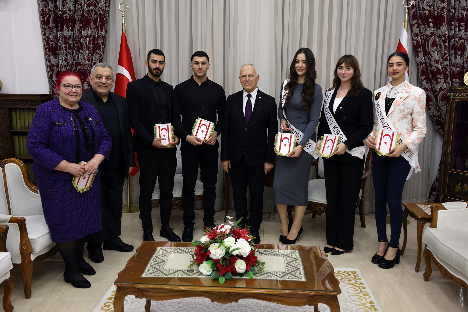 Lefkoşa, 14 Şubat 24 (TAK): Cumhuriyet Meclisi Başkanı Zorlu Töre, 2023 Miss Kuzey Kıbrıs ve Bay Kuzey Kıbrıs finalistlerini Meclis Şeref Salonunda kabul etti.