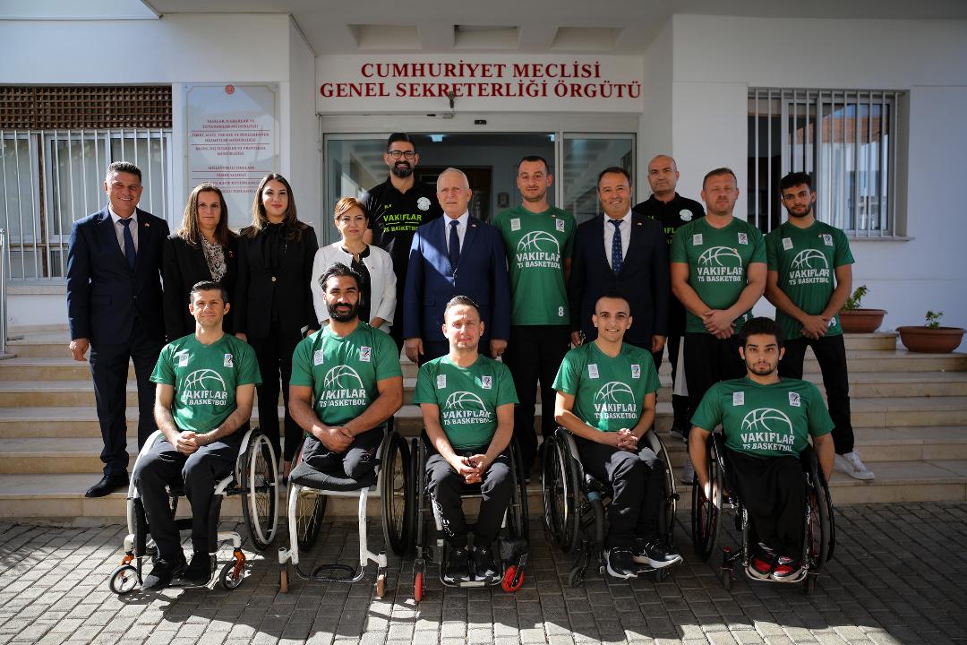 Başkanı Zorlu Töre, Engelliler Spor Federasyonu Başkanı Ahmet Akdeniz ve Türkiye Tekerlekli Basketbol 1. Ligi’nde mücadele eden Vakıflar Tekerlekli Sandalye Basketbol Takımı
