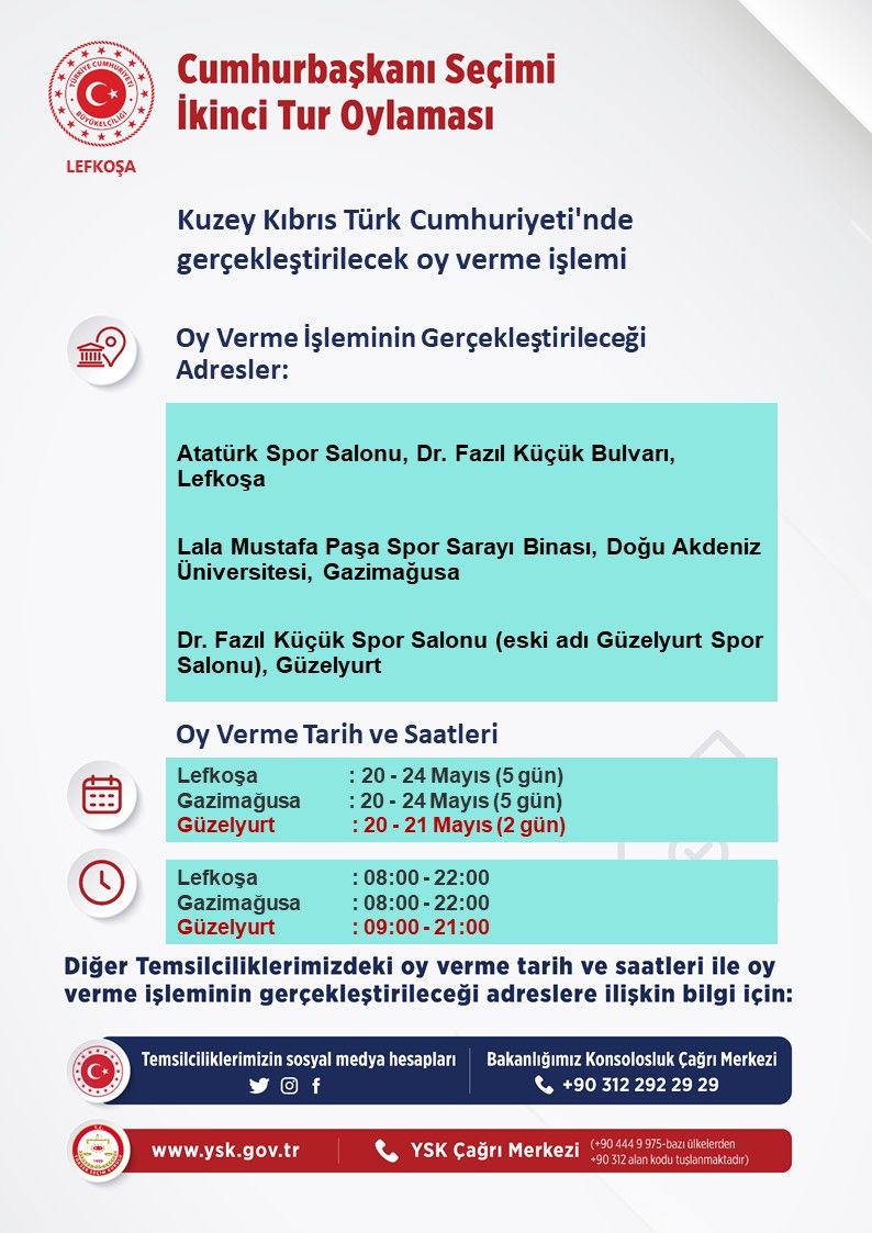 Türkiye'deki Cumhurbaşkanlığı seçimlerinin ikinci turu için seçmenlerin KKTC’de oy verme işlemi 20 Mayıs’ta başlayacak