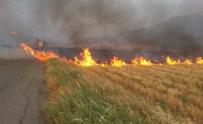 Lefkoşa, 3 Haziran 22 (TAK): Yılmazköy - Kılıçaslan köyleri arasındaki arazide çıkan yangında yaklaşık 150 dönümlük alan içerisinde bulunan anız ve  biçilmemiş buğday yandı.