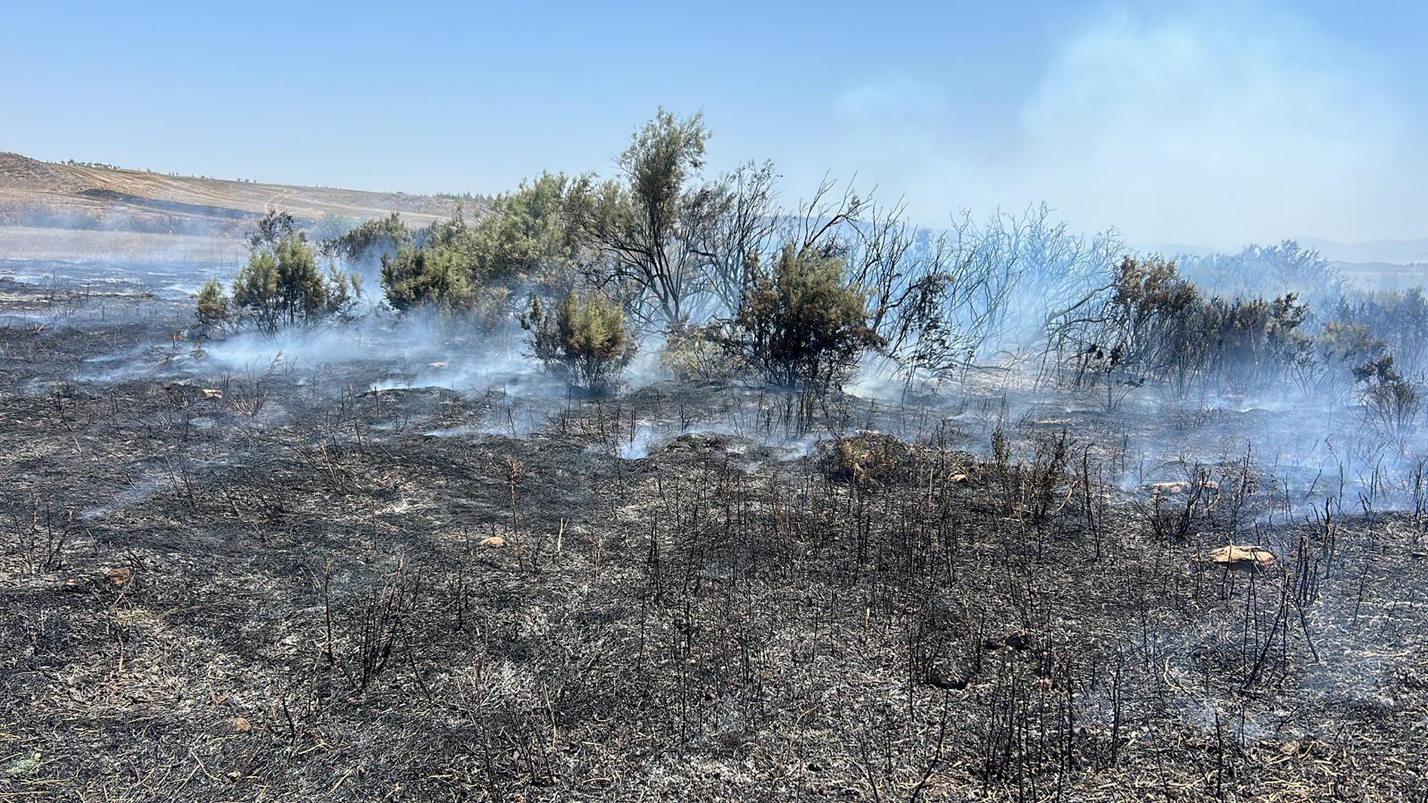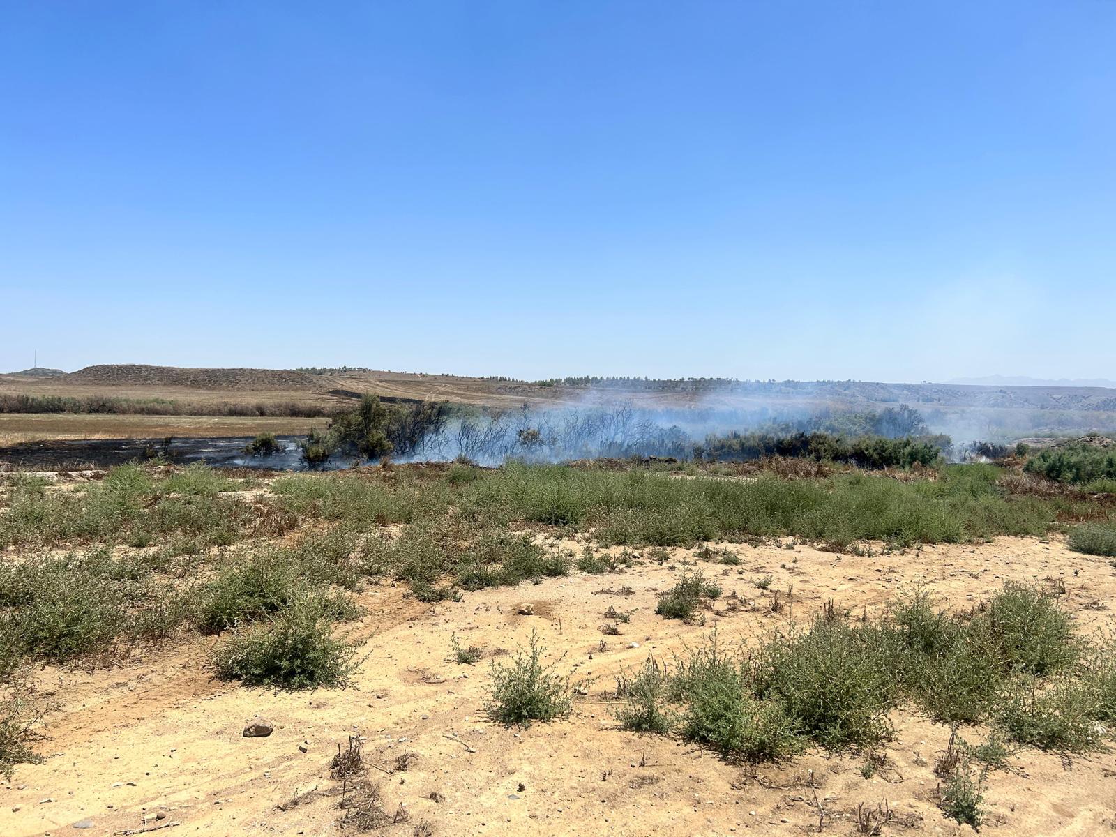 Lefkoşa, 15 Temmuz 23 (TAK): Yılmazköy'ün güneyindeki dere yatağında çıkan yangında, bir dönümlük arazi ve dere yatağındaki bitki örtüsü yandı.